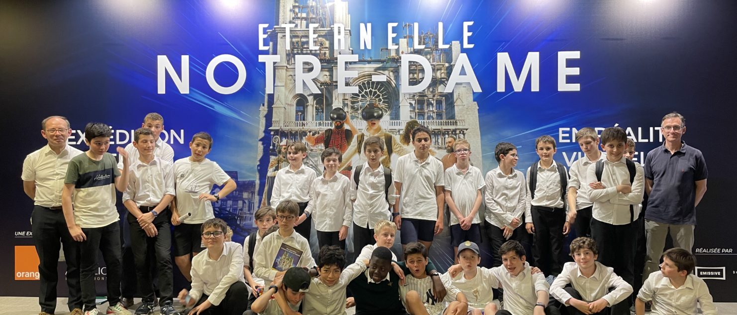 Dans le cadre d’une sortie organisée par le Club Delta, 33 élèves ont pu se rendre, le 18 mai, au spectacle de réalité virtuelle « Eternelle Notre-Dame » à La Défense. Un spectacle de très grande qualité, par le concepteur de la « Nuit des Invalides ». Pendant une heure, par petits groupes, chacun est emmené dans un parcours spatio-temporel, pour découvrir la construction de la cathédrale, visiter le chantier du Moyen-Âge et ses quatre-vingts métiers. Le voyageur monte sur une palette et s’élève à trente mètres de haut pour contempler le Paris de l’époque ; il se hisse à l’intérieur des tours pour voir battre les cloches, il visite la charpente, grimpe dans les orgues… Il suit les grandes heures de la vie de la cathédrale, il y rencontre les fantômes du passé : Saint Louis portant la Couronne d’épines ; Napoléon ; De Gaulle… Viollet-le-Duc et ses plans et maquettes… Il achève finalement la reconstruction de la cathédrale à la suite de l’incendie, et il assiste à la remise de la clef à l’évêque, dans le plus pur esprit du compagnonnage médiéval, et dans un grand respect, à travers le texte, de l’esprit et de l’âme de la cathédrale. Nul besoin de dire qu’élèves et accompagnateurs sont rentrés ravis.