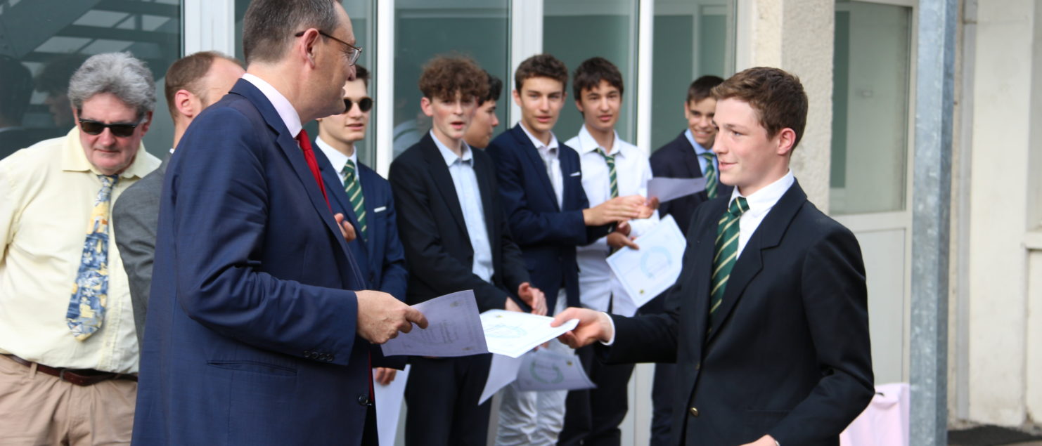 En préparation à la Fête-Dieu de ce dimanche, une procession eucharistique très soignée a eu lieu au lycée ce jeudi 8 juin : tapis de motifs végétaux sur le sol, magnifique ostensoir, dais porté par quatre élèves de Troisième, autels-reposoirs ornés à tous les étages, et adoration géante dans la cour ! Cette très belle cérémonie s’est terminée à 17h et a été suivie de la remise des prix des Premières et Terminales. Cette dernière était présidée par Joseph Couillaud, ancien élève qui a passé son Bac en 2016, et s’est marié en 2022. Etant passé par l’Ecole Supérieure d’Electronique de l’Ouest, à Angers, il travaille dans la sécurité informatique, chez Enedis, à Courbevoie. Cette après-midi a été marquée par une ambiance sereine et conviviale.