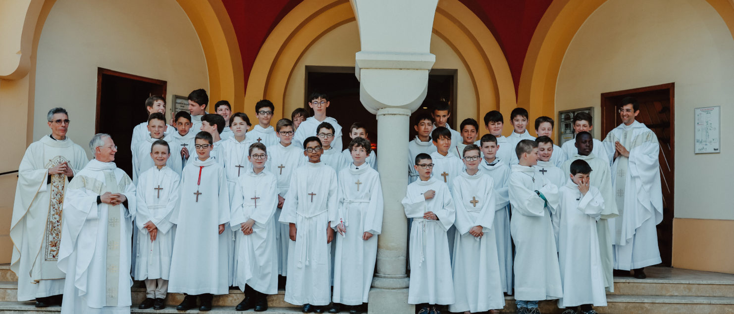 En ce 4 juin, début du week-end de la Pentecôte, à Saint-Maurice de Bécon, ont commencé les professions de foi des élèves de Hautefeuille. En effet, en raison du week-end chargé (pèlerinage de Chartres, 50 ans des SUF), les aumôniers ont dû scinder les cinquièmes en deux groupes, le deuxième groupe célébrant la profession de foi le samedi 11 à Hautefeuille. Les concélébrants étaient les abbés Hénaux et Laffon de Mazières, ainsi que l’abbé de Chomereau, vicaire de la paroisse et ancien aumônier de Hautefeuille. La cérémonie a été, comme celle de la confirmation quinze jours avant, très priante et très belle. Les photos, prises par Apolline Arnaud et M. Guita, ont été très appréciées.